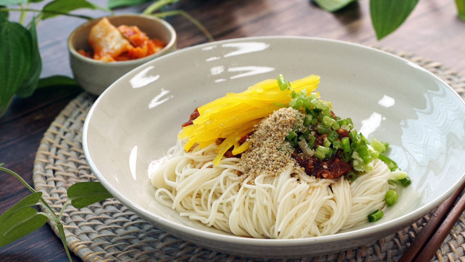 ¡Experimenta un sabor verdaderamente especial que te hará olvidar el bibim guksu común con la mágica salsa universal del Chef Baek Jong-won! Los fideos masticables, perfectamente complementados por la salsa agridulce, despertarán tu apetito. ¡Disfruta de un maravilloso momento culinario con ‘Las Recetas de Todo’, Man.Gye Recipe!