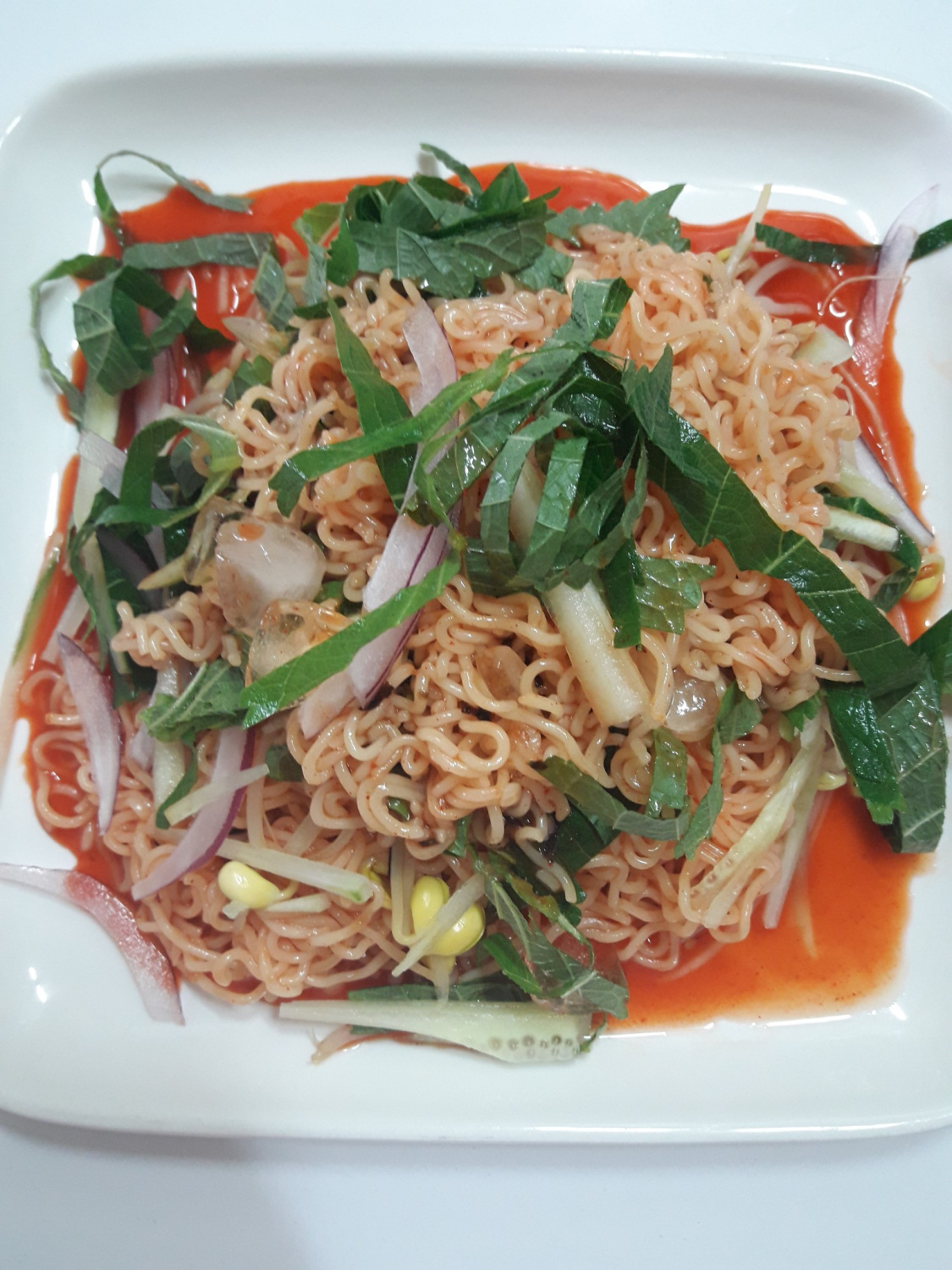 Bibim-myeon Refrescante con Abundantes Vegetales Frescos