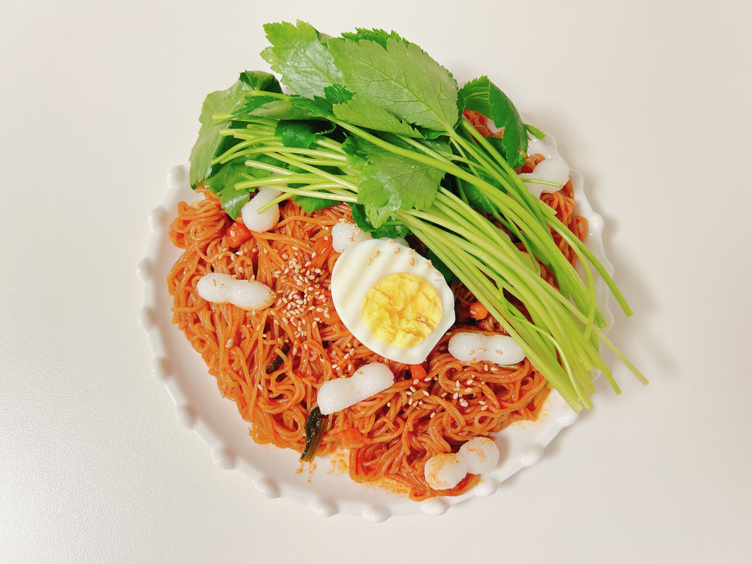 Personalmente, me encanta la rúcula, ¡y nunca imaginé que combinaría tan bien con el bibim naengmyeon! Mezclar la rúcula directamente con los fideos también es una excelente manera de disfrutarla. Cuando no tenga apetito en un día caluroso de verano, ¡pruebe este refrescante y delicioso ‘Bibim Naengmyeon con Rúcula y Tteok Elástico’ para una comida placentera! *^^*