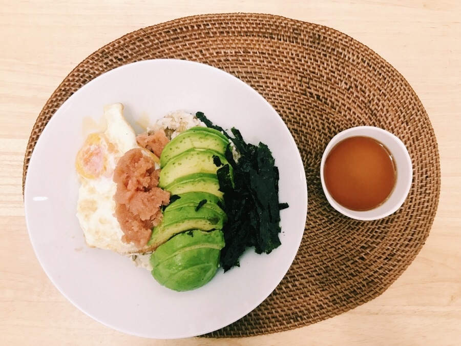 Coloca arroz caliente en un bol. Dispón de manera atractiva el aguacate y el roe preparados encima. Fríe un huevo a la plancha con la yema líquida y colócalo en el centro. Opcionalmente, espolvorea con copos de alga marina tostada y semillas de sésamo. Finalmente, rocía generosamente con aceite de sésamo fragante y añade 1 cucharada de salsa de soja Tuyu (o salsa de soja). Mezcla todo y disfruta de tu sabroso Bibimbap de Roe de Abadejo y Aguacate. Ajusta la cantidad de salsa de soja Tuyu a tu gusto.