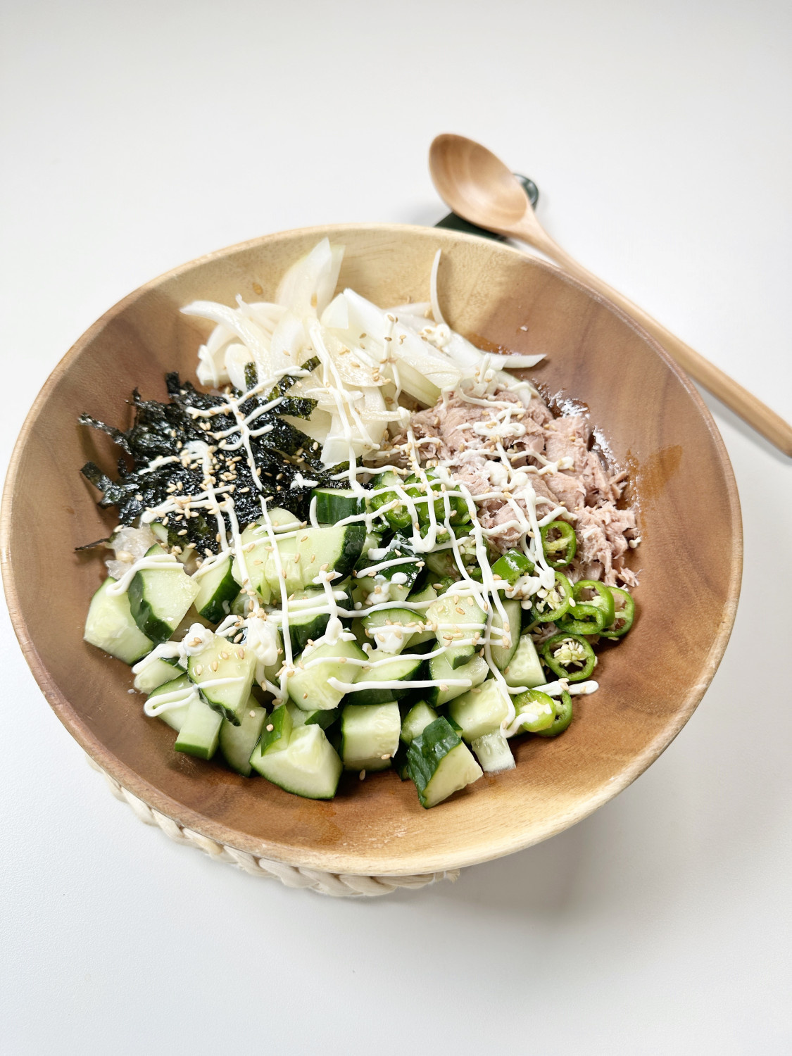 Bibimbap Refrescante de Pepino y Atún: Una Comida Dietética Simple y Saludable