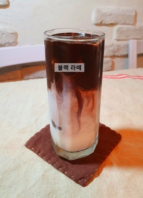 Cuando vi por primera vez el Black Latte insignia de una cafetería famosa en Seongsu-dong, pensé: ‘¿Qué es esto?’. Pero la forma en que se extendía lentamente como tinta sobre papel secante me cautivó tanto que ¡terminé haciéndolo yo mismo! El hermoso efecto de degradado negro que se crea a medida que desciende lentamente y se sumerge en la leche es realmente cautivador. Sorprendentemente, el sabor no es particularmente único; es similar a mezclar leche con polvo de gelatina o una bebida a base de chocolate. Para un Black Latte, ¡el atractivo visual es mucho más importante que el sabor! Me pregunto qué bebidas de café serán populares este verano.