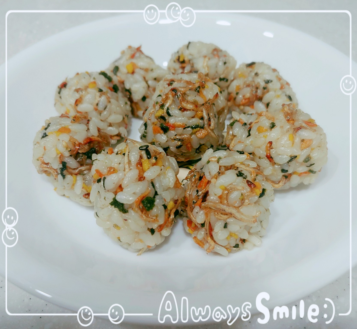 Hice anchoas salteadas y decidí preparar unas bolas de arroz con ellas en un instante.