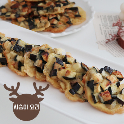 En un tazón mediano, añade 1 taza de harina de trigo (medida con una taza de papel coreana). Vierte gradualmente un poco más de 1 taza de agua. La masa no debe ser ni demasiado líquida ni demasiado espesa; busca una consistencia que cubra bien la berenjena. Bate bien con unas varillas o una cuchara hasta que esté suave y sin grumos.