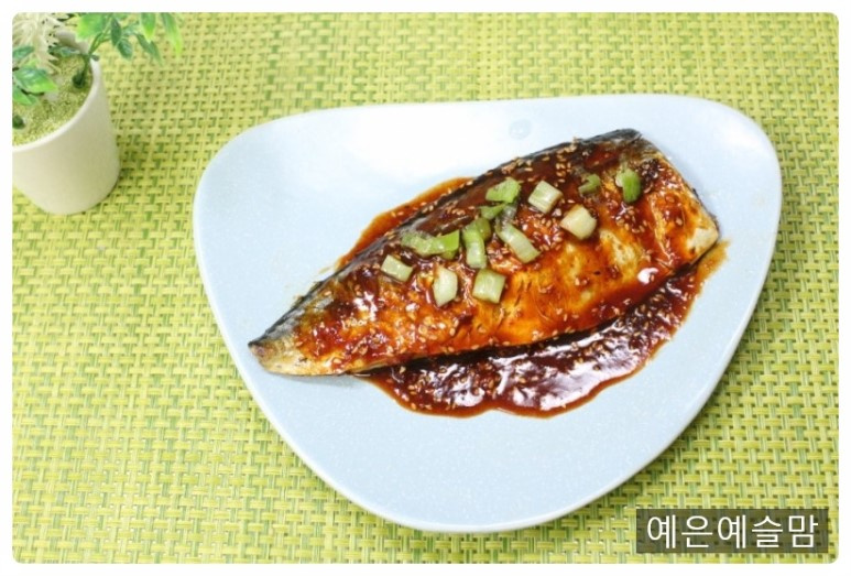 Ahora, preparemos la deliciosa salsa Gogalbi. Para el gogalbi con salsa de soja, mezcla 2 cucharadas de salsa de soja, 2 cucharadas de sirope de maíz y 1 cucharada de semillas de sésamo. Si prefieres el gogalbi picante de gochujang, mezcla 1 cucharada de gochujang con 1 cucharada de agua. Unta las salsas preparadas uniformemente por ambos lados de la caballa asada. Cocina solo un poco más, hasta que la salsa esté cocida, para que los sabores se integren en el pescado, haciéndolo aún más sabroso. Finalmente, espolvorea una pizca de pimienta negra para darle más aroma.