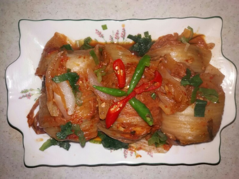 ¡Listo! ¿No luce increíblemente apetitosa la caballa envuelta en kimchi? Guisarla de esta manera permite que el propio kimchi actúe como un maravilloso condimento.