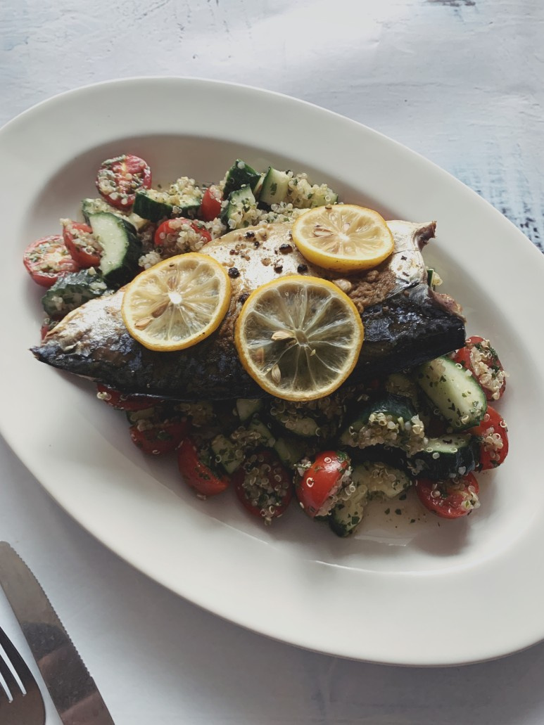 Si tienes caballa fresca, ¡es el momento perfecto para probar esta versión inspirada en el Mediterráneo! La prepararemos al horno con especias aromáticas y el toque cítrico del limón, acompañada de una ensalada de quinoa estilo mediterráneo. Es una manera deliciosa y saludable de disfrutar del pescado, perfecta para una comida ligera y llena de sabor.