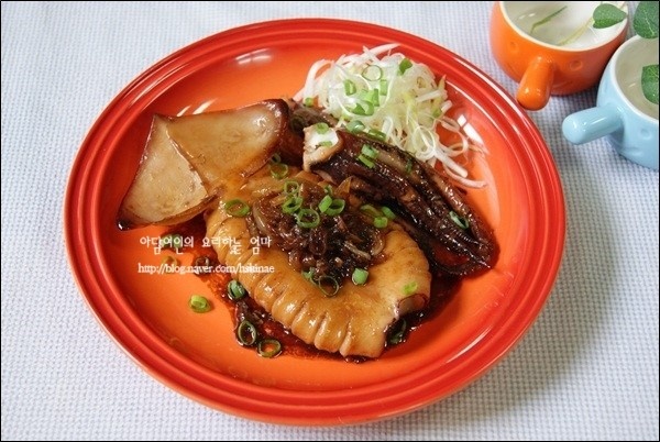 Enjuague bien el calamar fresco bajo agua corriente. Retire con cuidado los órganos internos del cuerpo. Pele la piel. Haga cortes diagonales separados por aproximadamente 1 cm en ambos lados del cuerpo del calamar; esto ayuda a que la salsa penetre bien y hace que el calamar se vea bonito al cocinarse. Prepare también los tentáculos.