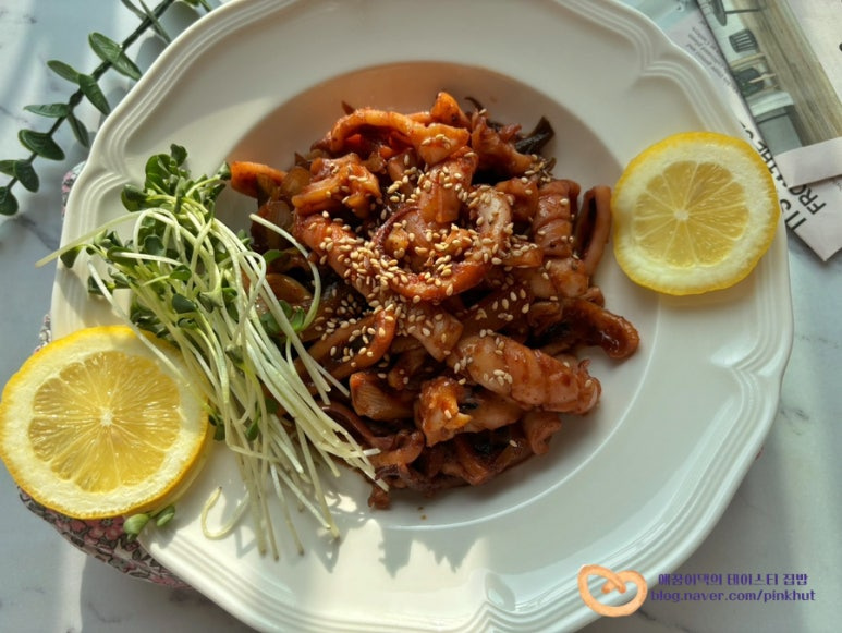 ¡En este punto, deberías notar un delicioso aroma similar al de los platos de restaurantes profesionales! Una vez que la cebolla se vuelva ligeramente rojiza y se ablande, añade el calamar preparado. Saltea a fuego alto. La receta del Chef Ryu Soo-young enfatiza agregar el calamar al final para mantener su textura tierna y húmeda.