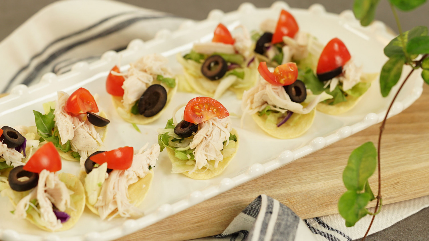 Canapés Crujientes de Patatas Fritas con Ensalada y Pollo