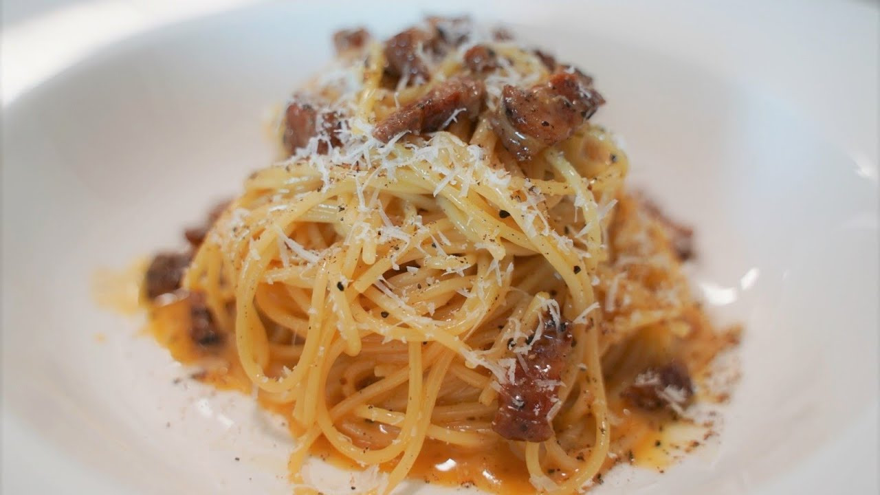 [Video de 1 Minuto] Prepara Carbonara Italiana Verdadera en Casa (Pecorino Romano y Guanciale)