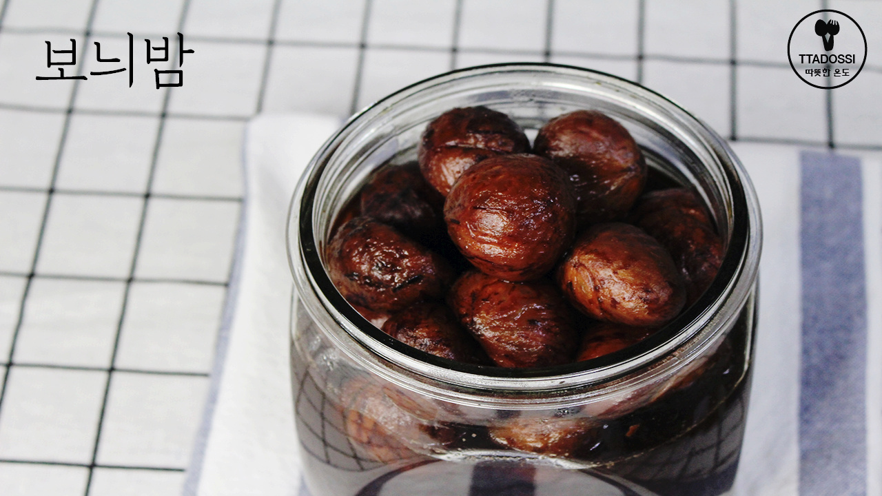 El otoño siempre se siente como una estación efímera, dejándome con ganas de más. Viendo la película ‘Little Forest’, me inspiré en cómo Hye-won (interpretada por Kim Tae-ri) preparaba sus castañas confitadas y realmente quise probarlo. Recordé disfrutar el dulce sabor de las ‘boni-bam’ (castañas con su piel interior) de una panadería donde trabajé a tiempo parcial. Este otoño, recordando esos dulces momentos y sabiendo lo útiles que serían para la repostería, decidí prepararlas. Aunque hacer ‘boni-bam’ requiere un poco de esfuerzo, el delicioso resultado hace que cada paso valga la pena. Las ‘boni-bam’ se refieren a castañas preparadas de tal manera que incluso la piel interior (llamada ‘yulpi’ en coreano) se puede comer. ‘Bo-nui’ es la palabra coreana para esta piel interior, ¡un nombre hermoso! Dado que se consume la ‘yulpi’, el proceso implica eliminar su astringencia y ablandar su textura para crear esta deliciosa conserva de castañas. Aunque lleva tiempo y cuidado, ¡recomiendo encarecidamente que intenten prepararla! Disfruten de los días más frescos de otoño con un trozo de ‘boni-bam’ caliente y una reconfortante taza de té.