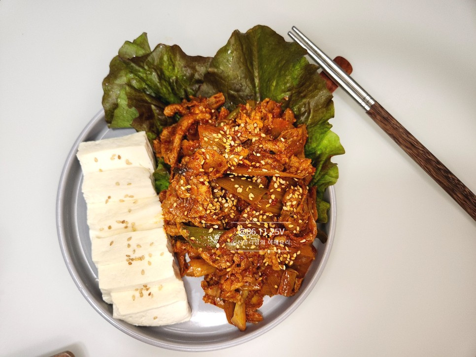 Cuando se sirve con tofu, este Cerdo Salteado con Kimchi se transforma en un delicioso ‘Salteado de Kimchi con Tofu’. ¡Solo mirar este plato me hace desear un vaso frío de makgeolli (vino de arroz coreano)! Es perfecto como guarnición para la lonchera, como plato principal, o incluso como un delicioso acompañamiento para bebidas. ¡Disfrute de su deliciosa comida!