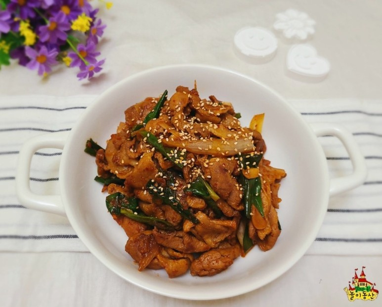 Cerdo Salteado Picante y Dulce con Cebolleta Estilo Baek Jong-won