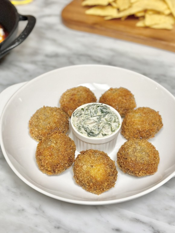 Los champiñones fritos calientes recién hechos son deliciosos por sí solos, pero acompañarlos con una salsa de espinacas o alioli de ajo crea una experiencia de sabor aún más rica. También pueden simplemente mojarlos en ketchup o mayonesa a su gusto. Incluso sin salsa, la combinación del profundo sabor del champiñón y el crujiente rebozado es exquisita. ¡Disfruten de su deliciosa creación!