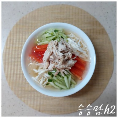 Combate el calor con este delicioso Chogye Guksu. Esta receta utiliza pechuga de pollo y caldo de fideos fríos para un plato refrescante y sabroso que puedes preparar fácilmente en casa, perfecto para cuando no tienes mucho apetito.