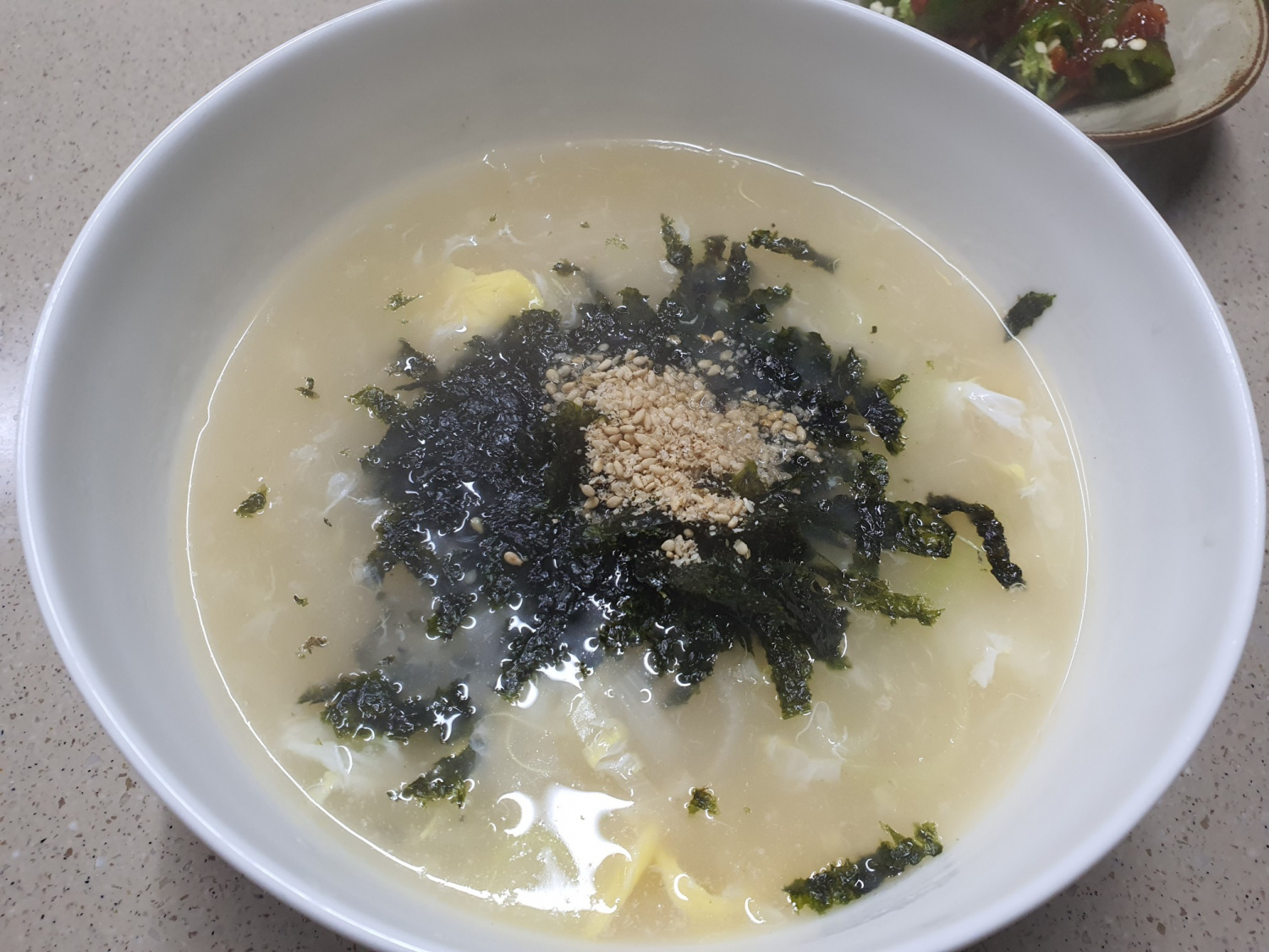 Finalmente, cubra generosamente con la alga nori desmenuzada y las semillas de sésamo tostadas. ¡Su sabroso y reconfortante Tteokguk con caldo de anchoas está ahora listo! Para un toque extra de sabor, un chorrito de aceite de sésamo también es delicioso.