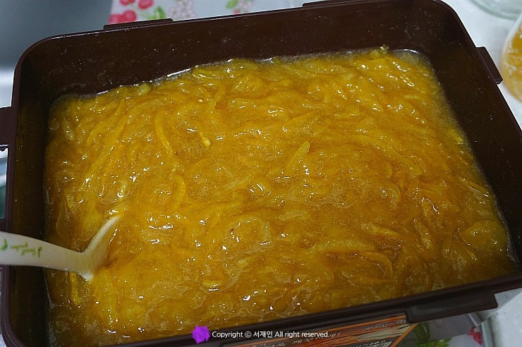 Mezcla todo a fondo hasta que esté bien combinado. Transfiere la mezcla a un recipiente hermético (como un contenedor de kimchi), tápalo y déjalo reposar en un lugar fresco, como un balcón, durante medio día. Esto permite que el azúcar y la miel comiencen a disolverse y a infusionarse en el yuzu.