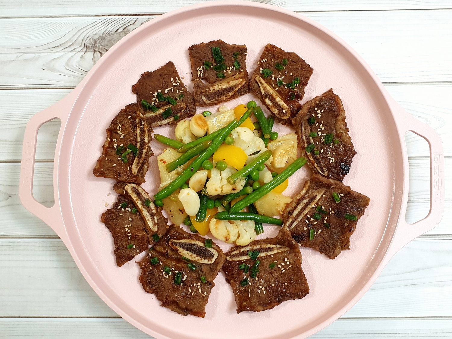 ¡Aquí tienes un LA Galbi maravillosamente tierno, infundido con un delicioso aroma frutal del kiwi y la piña! (Sírvelo con arroz caliente o disfrútalo junto con algunas verduras salteadas para una comida aún más completa y deliciosa.)