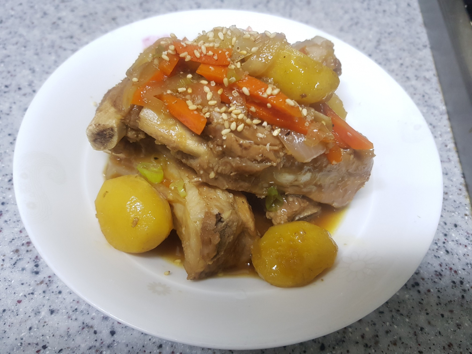 ¡Y aquí tiene sus deliciosas costillas de cerdo estofadas en salsa de soja! Sírvalas calientes y disfrute de una maravillosa comida con su familia. ¡Son perfectas para tomarlas con las manos y comer directamente del hueso!