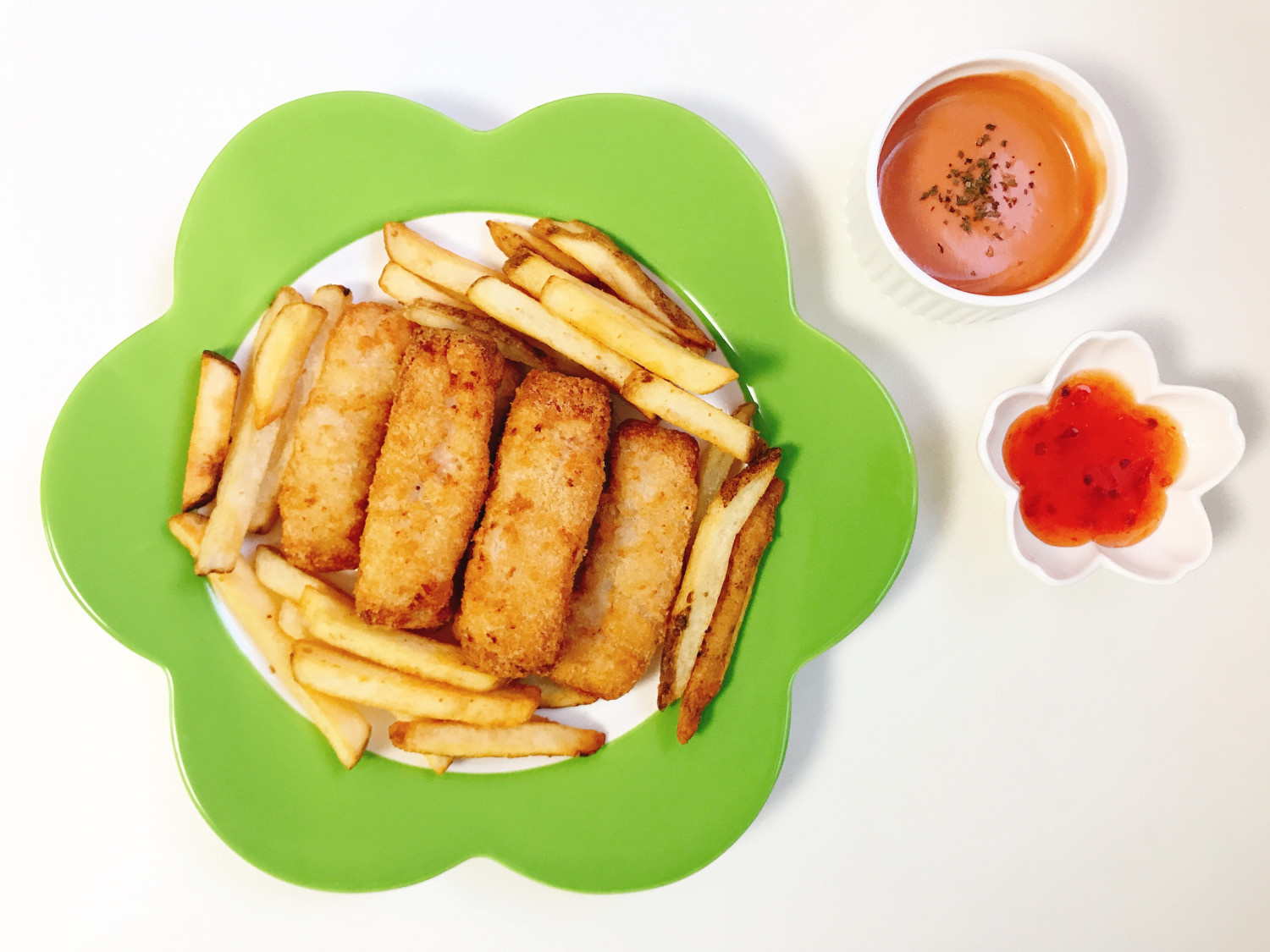 ¡Voilà! Palitos de camarón regordetes y papas fritas doradas están listos. ¿No se les hace agua la boca solo con mirarlos? Cocinen las papas fritas restantes utilizando el mismo método.