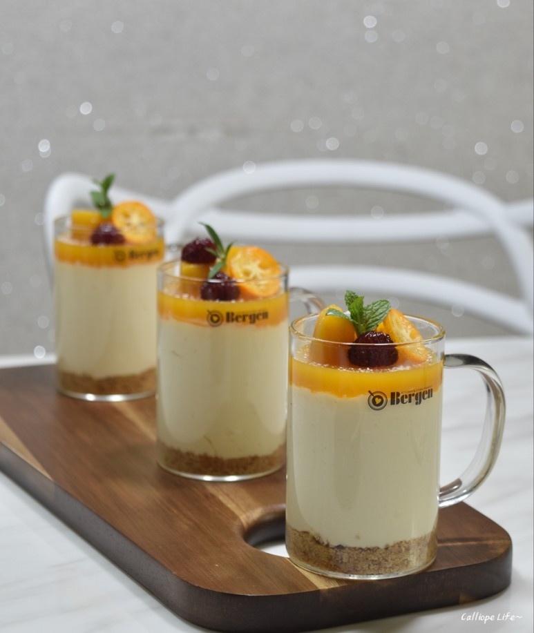 Rellene los vasos preparados con el relleno de crema de mango hasta aproximadamente el 70-80%. Vierta con cuidado la base de gelatina de mango sobre la crema para llenar el espacio restante. Coloque los vasos en el refrigerador y enfríe durante al menos 2 horas, o hasta que la gelatina esté completamente cuajada.