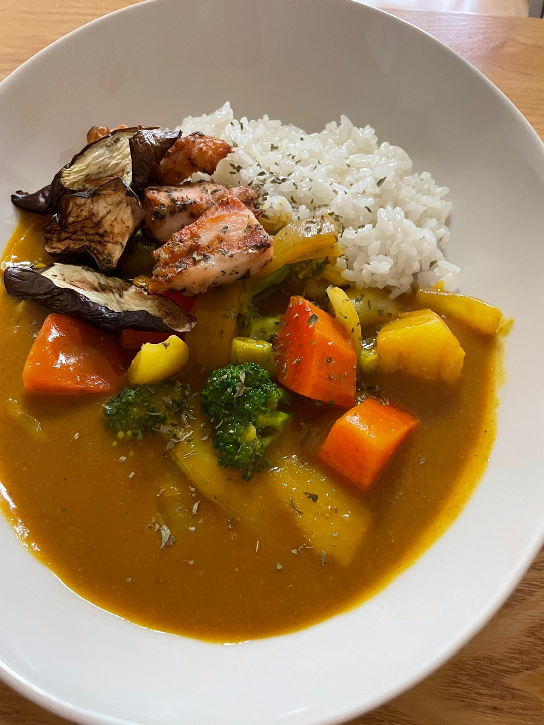 Curry Especial con Pechuga de Pollo y Berenjena a la Parrilla