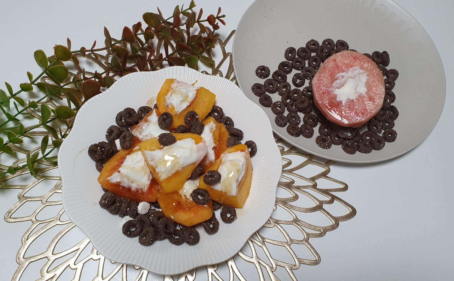 Inspirada por la forma en que Park Na-rae y Hwasa disfrutaron los melocotones en el programa de televisión ‘I Live Alone’, decidí probar esta receta con los ingredientes que ya tenía en casa. ¡El resultado fue increíblemente delicioso! Perfecto como tentempié y muy fácil de preparar. ¡Te encantará este delicioso postre de melocotón!