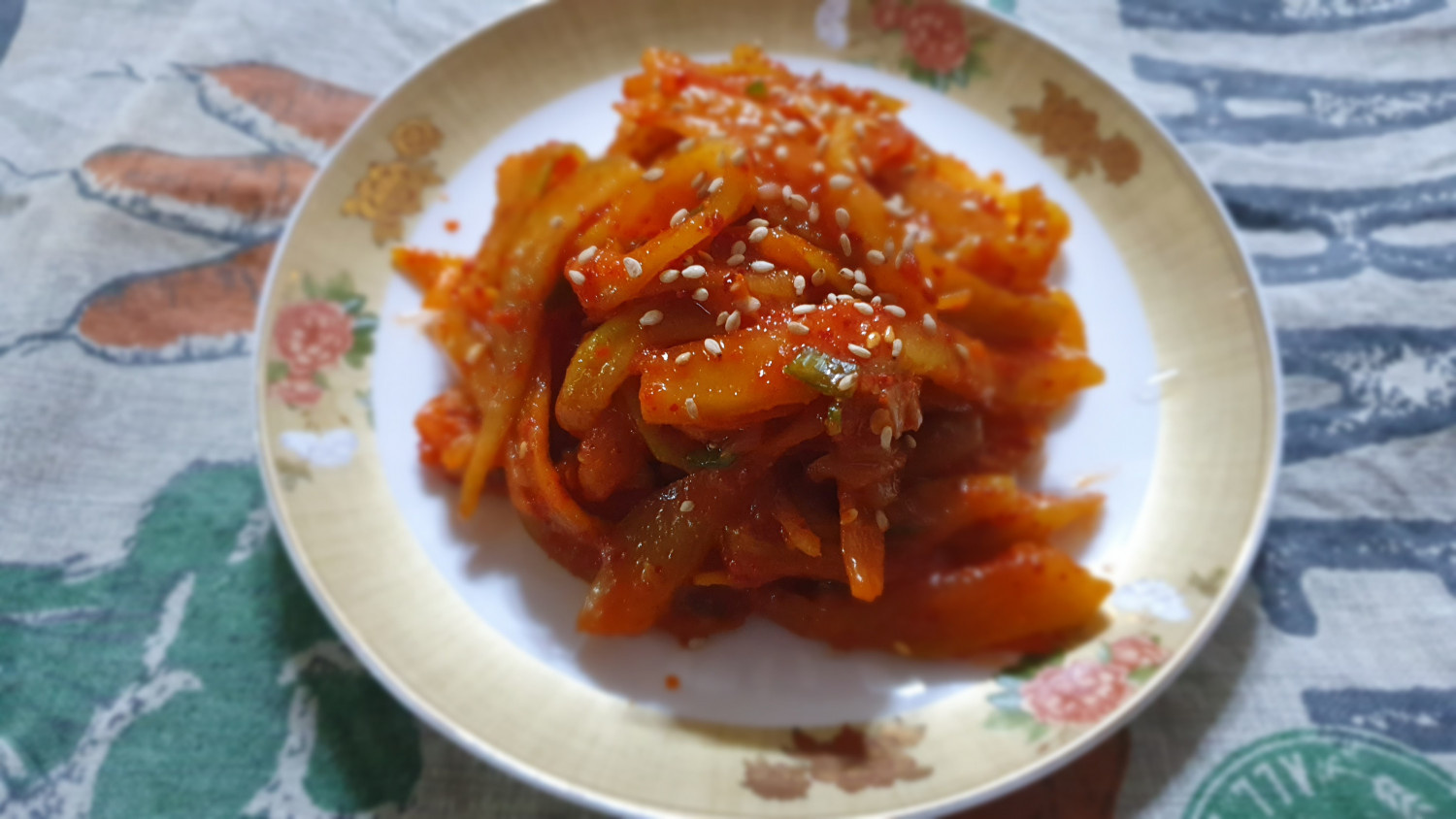 ¡Transforma la cáscara de sandía sobrante en una deliciosa ensalada! Esta ensalada de cáscara de sandía captura el sabor fresco del verano con su textura crujiente y su refrescante sabor agridulce. Es el acompañamiento perfecto cuando tienes poco apetito y un verdadero placer para acompañar el arroz. Prepara un plato exquisito utilizando la cáscara que normalmente desecharías después de comer sandía. Corta finamente la parte blanca interior de la cáscara y mézclala con diversos condimentos para crear un plato de acompañamiento que guste a todos.