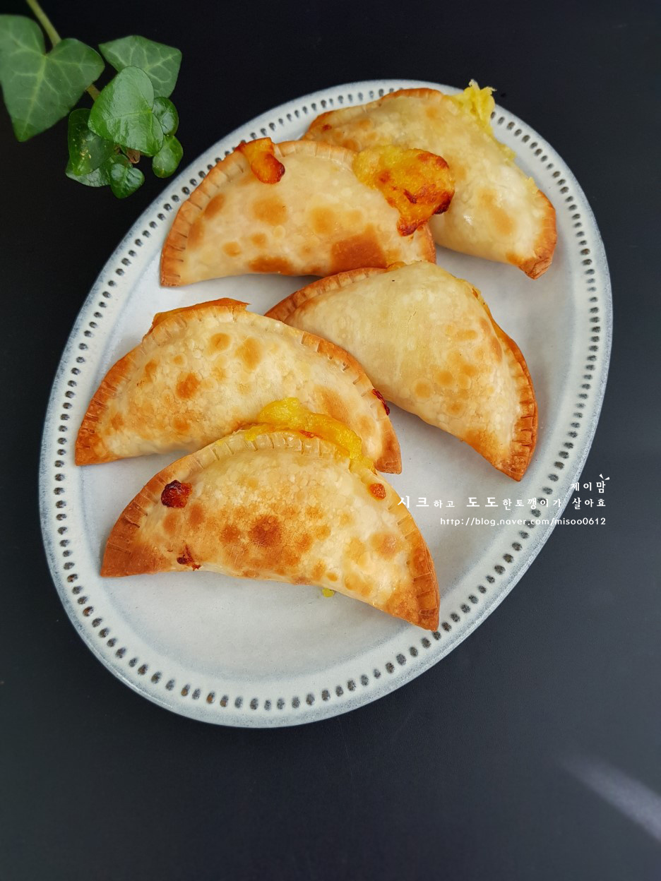 ¡Listo! Tus deliciosas empanadillas de batata, maíz y queso están preparadas. Tienen una pinta estupenda y un olor que abre el apetito.