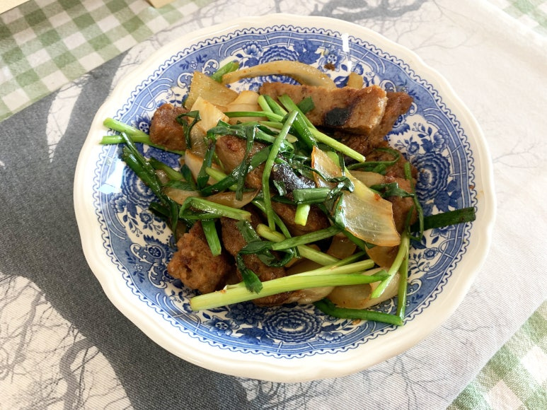 ¡Disfruta de este sustancioso plato de acompañamiento y especial plato de carne hecho con tteokgalbi, cebolla y cebollín! (Las fotos se tomaron en un día con sol espléndido).