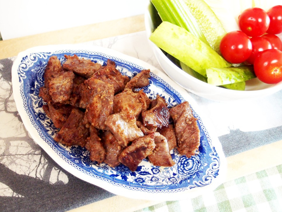 Disfruta de un jugoso y tierno solomillo de cerdo (conocido como ‘Galmaegisal’ en Corea), marinado con una salsa especial de comino para eliminar cualquier sabor fuerte. Este plato saludable y delicioso se complementa perfectamente con una refrescante ensalada de pepino, tomate y apio. Una opción fantástica para una comida equilibrada y satisfactoria.