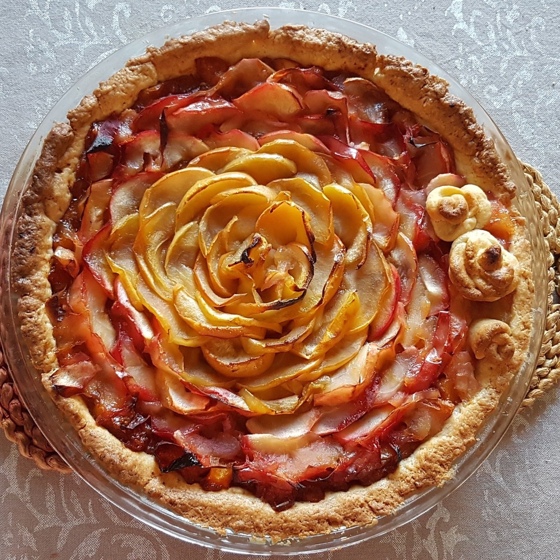 La región de Bretaña, en Francia, es conocida por su abundancia de manzanas y peras, lo que a menudo resulta en que muchas casas tengan sus propios manzanos. Ante una generosa cosecha de manzanas, surgió esta receta de Tarte aux Pommes. Esta tarta presenta una masa maravillosamente crujiente combinada con manzanas dulces, tiernas y especiadas con canela. Es perfecta para compartir con familiares y amigos, ofreciendo un delicioso sabor de la pastelería francesa.