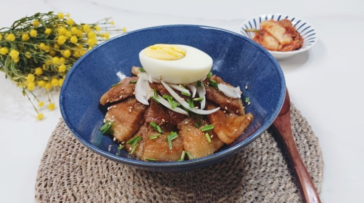 ¡A mi familia le encanta la carne! Hoy, para la cena, prepararemos un especial Donburi de Chashu de panceta de cerdo, con un delicioso equilibrio entre dulce y salado. La tierna panceta y la sabrosa salsa cubrirán generosamente el arroz para una experiencia culinaria inolvidable.