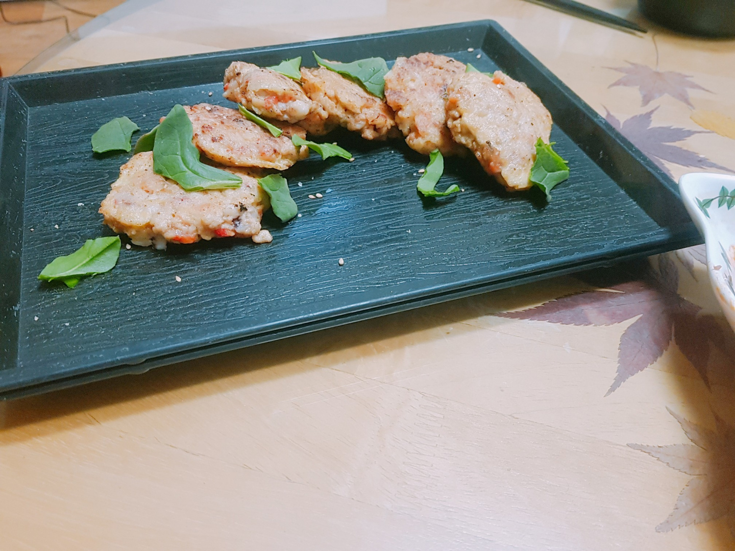 Coloca los donggeurangttaeng perfectamente fritos de forma atractiva en un plato para servir. Decora con hojas de espinaca rasgadas y una pizca de semillas de sésamo para un acabado visualmente atractivo. ¡Tus deliciosos Donggeurangttaeng de calamares están listos! Se disfrutan mejor calientes.