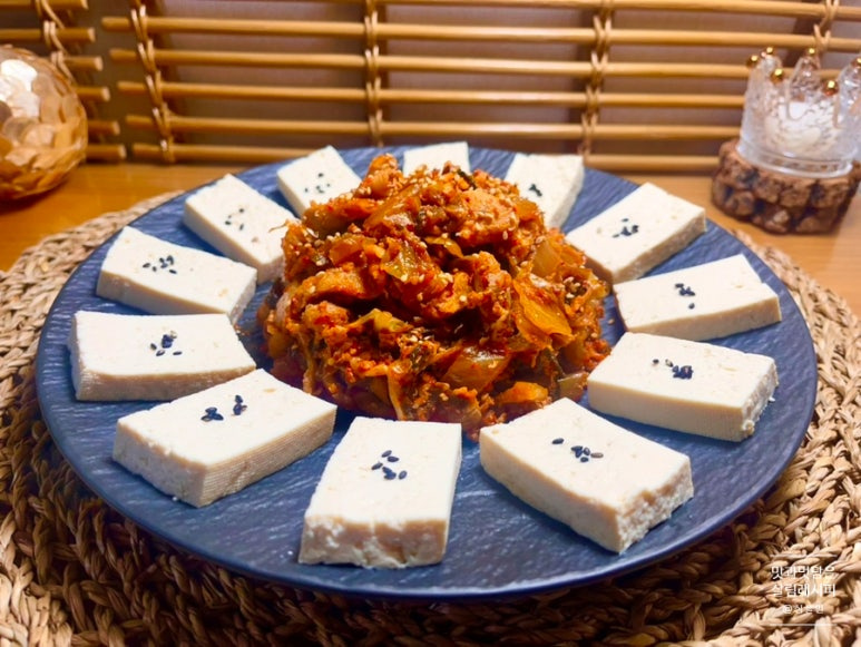 ¡Ahora, ensamblemos el Dubu Kimchi de manera atractiva! Coloca una porción generosa de kimchi salteado en el centro de un plato de servir. Dispón el tofu calentado y cortado en círculo alrededor del kimchi para una presentación atractiva. Este plato, rico en proteínas del tofu y lleno de sabor, es también una excelente opción para una dieta. Comerlo sin arroz, cubierto con kimchi salteado y cerdo sobre el tofu, es increíblemente delicioso. Incluso cuando se sirve con arroz, el tofu te ayuda a controlar tu ingesta de carbohidratos. Si buscas formas de usar tu kimchi añejo a medida que se acerca la temporada de kimchi, prueba esta receta de Dubu Kimchi con cualquier cerdo que tengas a mano para una comida maravillosa.