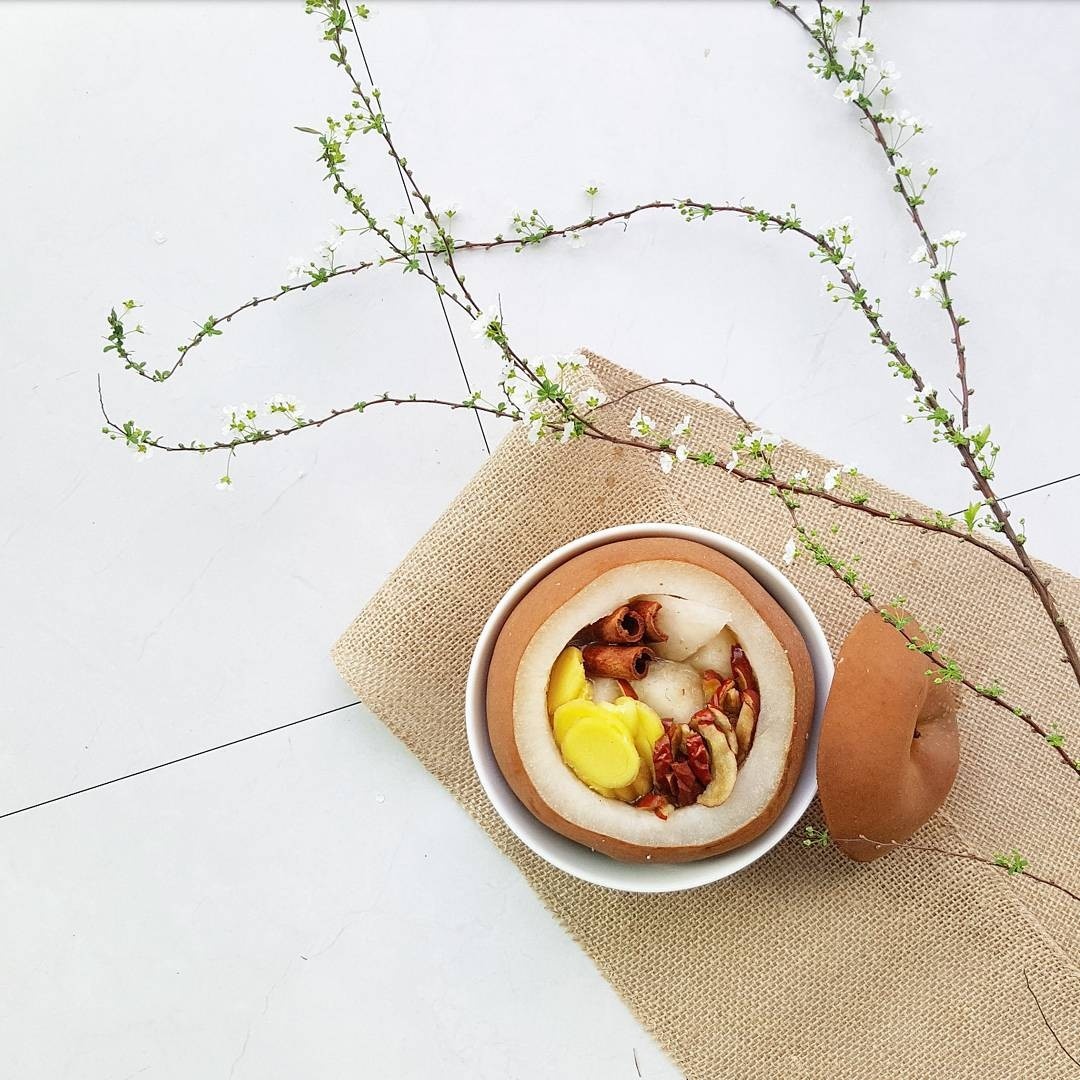 Ahora es el momento de rellenar la pera ahuecada. Vuelve a colocar la pulpa de pera reservada dentro de la pera vacía, junto con las rodajas de jengibre, los dátiles en tiras y una pizca de canela en polvo. Finalmente, rocía 2 cucharadas de miel sobre el relleno para añadir dulzor. Una vez rellena, coloca la pera en una vaporera o una olla con tapa. Cocina al vapor suavemente (método al baño maría) durante aproximadamente 1 hora, o hasta que la pera esté translúcida y tierna. Asegúrate de que el agua no se desborde durante la cocción al vapor ajustando el fuego. ¡Tu reconfortante Baesuk estará listo!