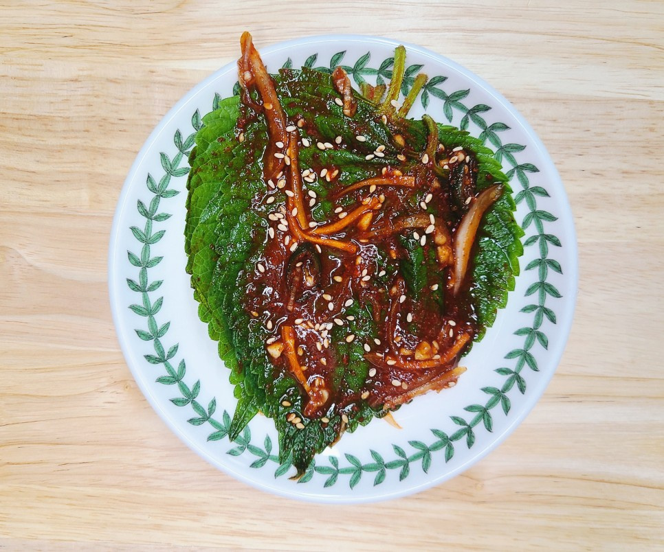 Transforma las hojas de perilla frescas que te sobran de los rollos (ssam) en una ensalada fragante y sabrosa con un aderezo delicioso. Este plato es un verdadero ‘ladrón de arroz’, increíblemente rico incluso recién hecho. Aquí tienes una receta que resulta en un acompañamiento perfecto o un relleno delicioso para tus rollos.
