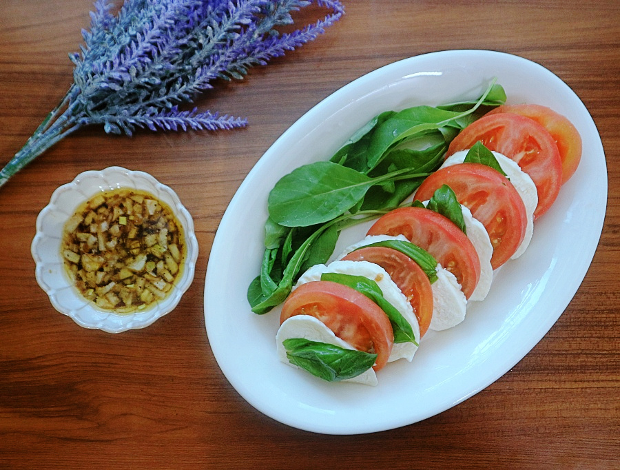 Descubra la deliciosa frescura de una Ensalada Caprese de Tomate casera, realzada con generosas cantidades de albahaca cultivada en casa para un sabor extra vibrante y refrescante. Entre la gran variedad de ensaladas, la combinación de tomates, queso y hojas de albahaca ofrece un sabor único y satisfactorio. El uso abundante de queso mozzarella fresco y cremoso realza verdaderamente el perfil de sabor general. Aunque increíblemente fácil de preparar, esta ensalada presume de un sabor sofisticado, lo que la convierte en un aperitivo perfecto para los amantes del vino o un plato impresionante para agasajar a los invitados. ¡Cree una experiencia de ensalada refrescante y sabrosa con esta receta Caprese, utilizando su propia rúcula y albahaca caseras!