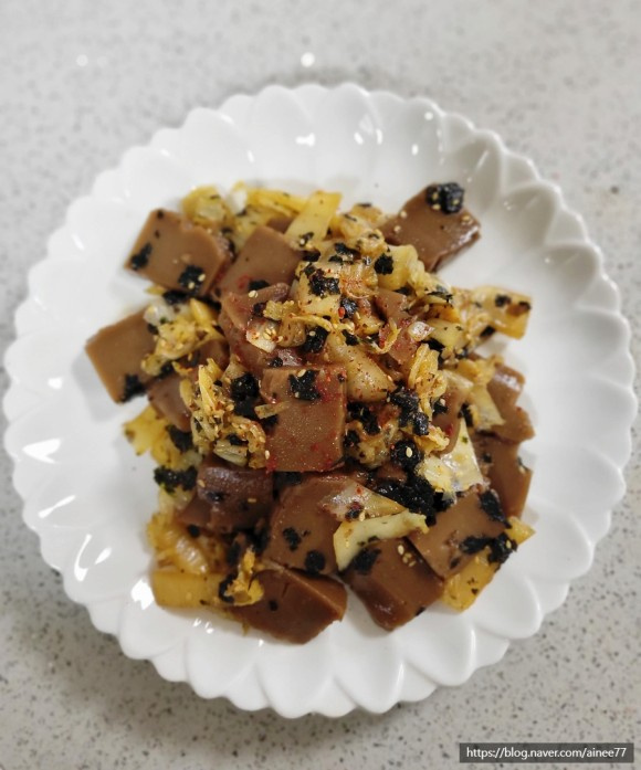 Esta receta de Dotori Muk Muchim, inspirada en la versión del Chef Ryu Su-young, combina maravillosamente la textura masticable de la gelatina de bellota con el crujiente y ácido del kimchi añejo. La adición de aceite de perilla aporta un delicioso aroma a nuez, convirtiéndola en un acompañamiento fantástico para el makgeolli (vino de arroz coreano) o el soju.