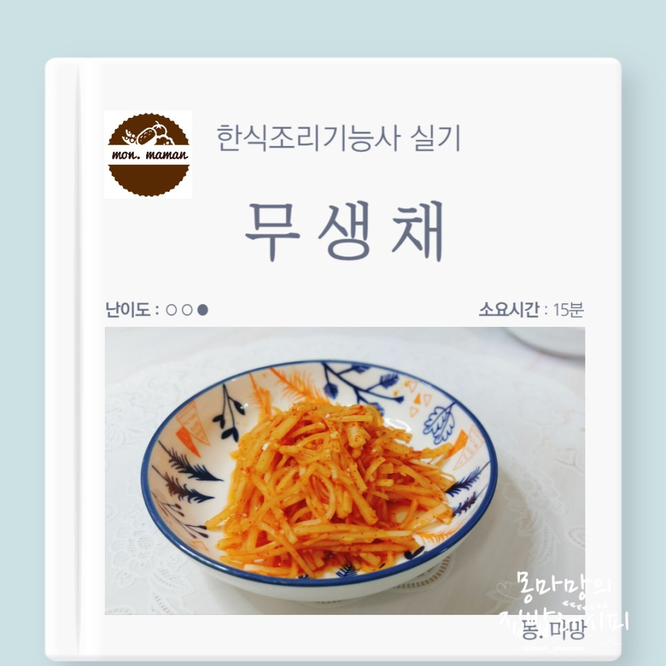 Esta publicación ofrece consejos e ideas útiles para quienes se preparan para el examen práctico de la prueba de habilidades en cocina coreana. Aunque pueda encontrar información en academias o libros de texto, escribo esto como una reseña desde la perspectiva de alguien que ha pasado por el proceso de preparación, incorporando pasos necesarios y lecciones aprendidas de los errores. ¡Preparemos un delicioso Mu Saengchae con un equilibrio perfecto de textura crujiente y sabor agridulce!
