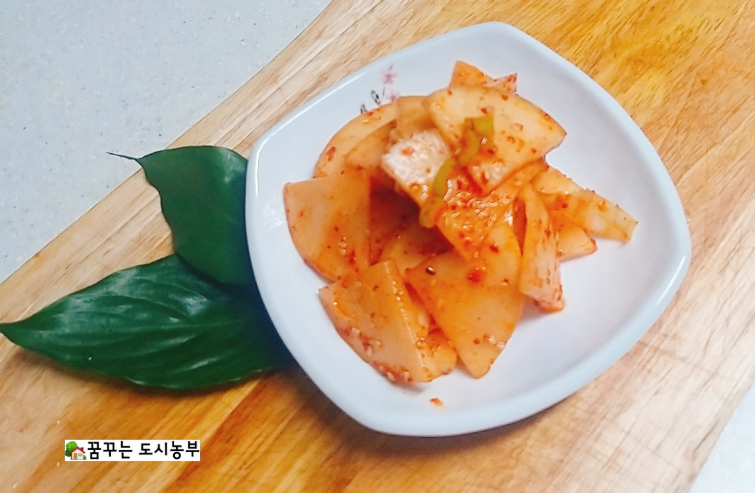 Esta es una receta súper sencilla para preparar una guarnición deliciosa que te hará devorar tu arroz, ¡hecha con rábano dongchimi! Disfruta de su textura crujiente perfecta y su sabor agridulce.