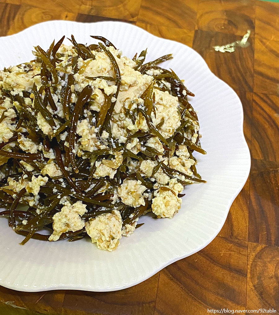 Las algas marinas (llamadas ‘Toss’ en coreano), con solo 24 calorías por 100g, son bajas en calorías y ricas en fibra dietética. Son ideales para aumentar la saciedad, inhibir la absorción de grasas y promover el movimiento intestinal, lo que las hace perfectas para una dieta. Disfruta de esta nutritiva ensalada que combina la textura masticable de las algas marinas con el suave tofu.
