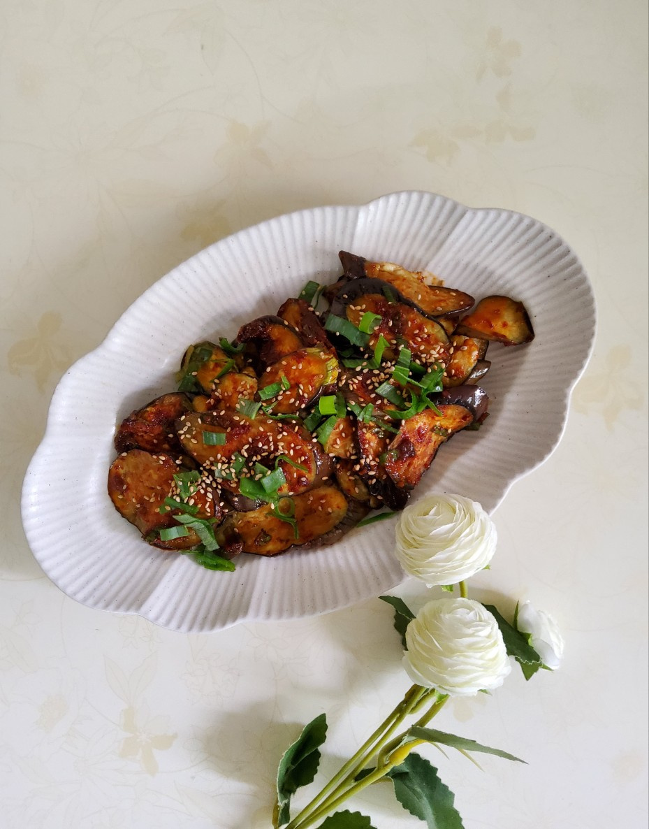 ¡Hola! Hoy les presento una deliciosa receta de ‘Ensalada de Berenjena a la Parrilla’ que hará que incluso aquellos que normalmente no les gusta la textura blanda de la berenjena se enamoren de ella. El exterior a la parrilla ofrece una ligera masticabilidad, el interior está maravillosamente tierno y el sabroso aderezo se impregna maravillosamente, haciéndola increíblemente apetitosa.