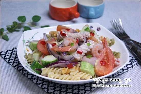 Ensalada de Pasta con Mariscos y Aderezo Refrescante de Salsa de Pescado