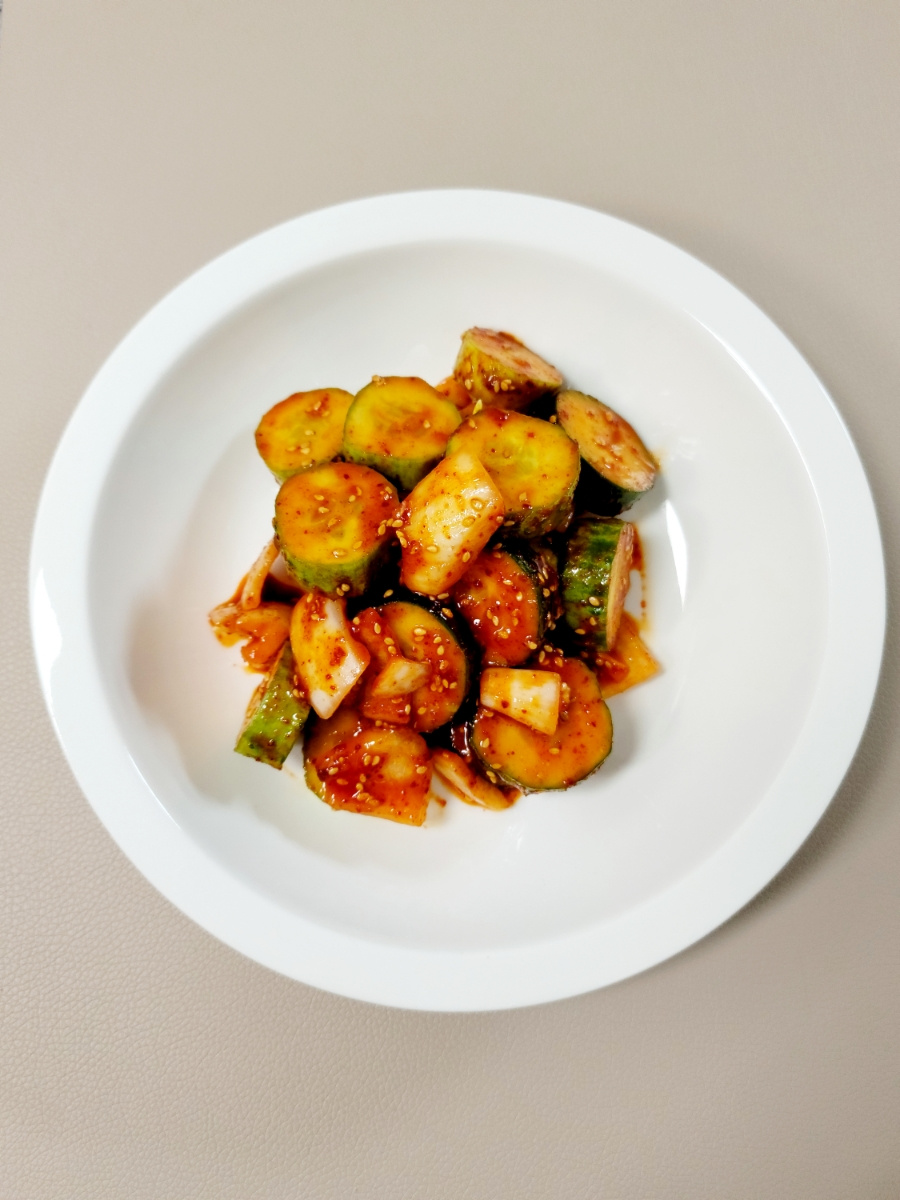 ¡Y aquí lo tienes! Tu ensalada de pepino agridulce, súper sencilla y rápida, ¡está lista en solo 5 minutos! Es un excelente acompañamiento para cualquier comida, o una opción ligera perfecta cuando no tienes mucho apetito. ¡Disfruta tu deliciosa creación!