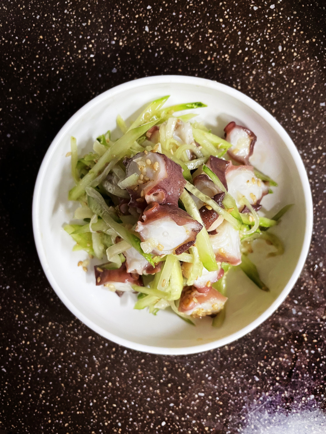 Ensalada de Pulpo tierno y masticable con aderezo de aceite de sésamo aromático