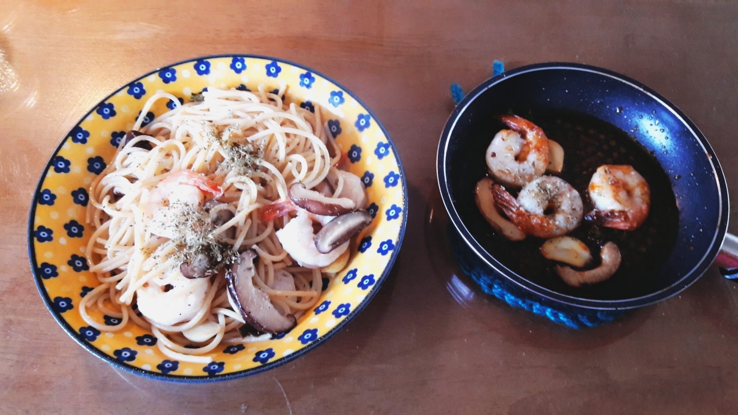 Agrega los camarones jumbo pelados y los champiñones shiitake rebanados a la sartén con el aceite aromático de ajo y chile. Saltea hasta que los camarones se pongan de color rosa opaco y los champiñones estén ligeramente tiernos. Evita cocinar demasiado los camarones, ya que pueden volverse duros.