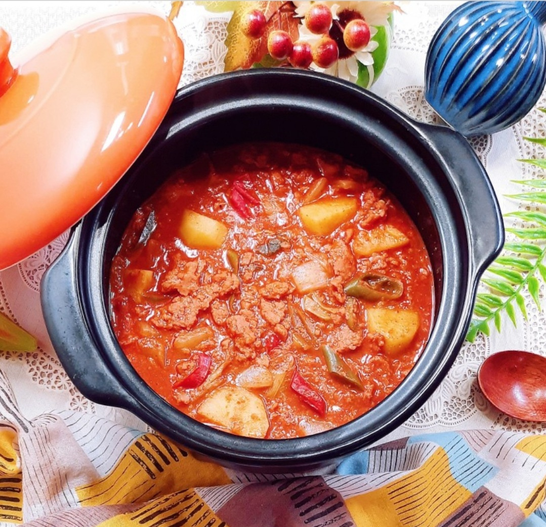 Hoy preparé un estofado de Gochujang con Spam y patatas, inspirado en la receta del Chef Baek Jong-won. Esta es una versión estilo ‘jjigae’, lo que significa que el caldo se reduce a la mitad en comparación con un estofado típico, creando un sabor maravillosamente concentrado. ¡A mi marido le encantó! Aunque normalmente cocino para el gusto de mi hija, me aseguro de satisfacer las preferencias de mi marido un par de veces por semana. Sus felices reacciones de ‘¡delicioso!’ siempre me dan fuerzas.