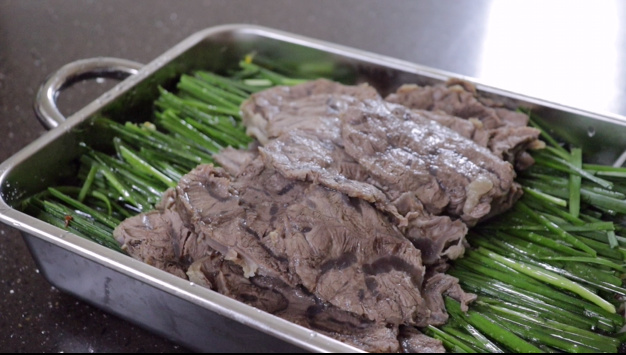 Primero, es crucial remojar adecuadamente la falda de res para eliminar la sangre. Sumerge el Arongsatae en abundante agua fría durante aproximadamente 1 hora. Cambiar el agua una o dos veces durante este tiempo ayudará a asegurar que se limpie a fondo.